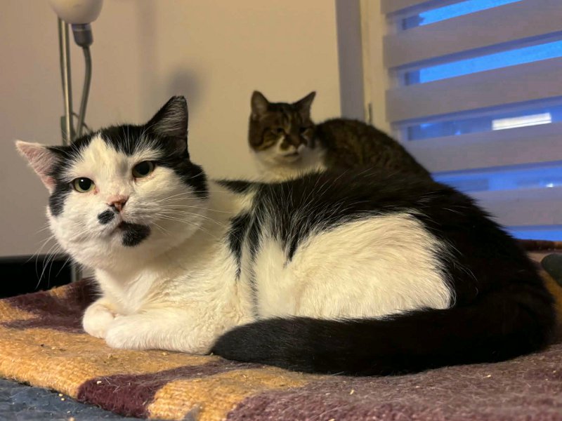Bolek to kilkuletni, nieśmiały, czarno-biały kocurek o ślicznym okrągłym pyszczku. Wygląda jak łaciata krówka. Bolek jest alergikiem i z tego powodu nie może jeść drobiu. Zwłaszcza kurczaka. Poza tym szczegółem jest kotem jak każdy inny 😀