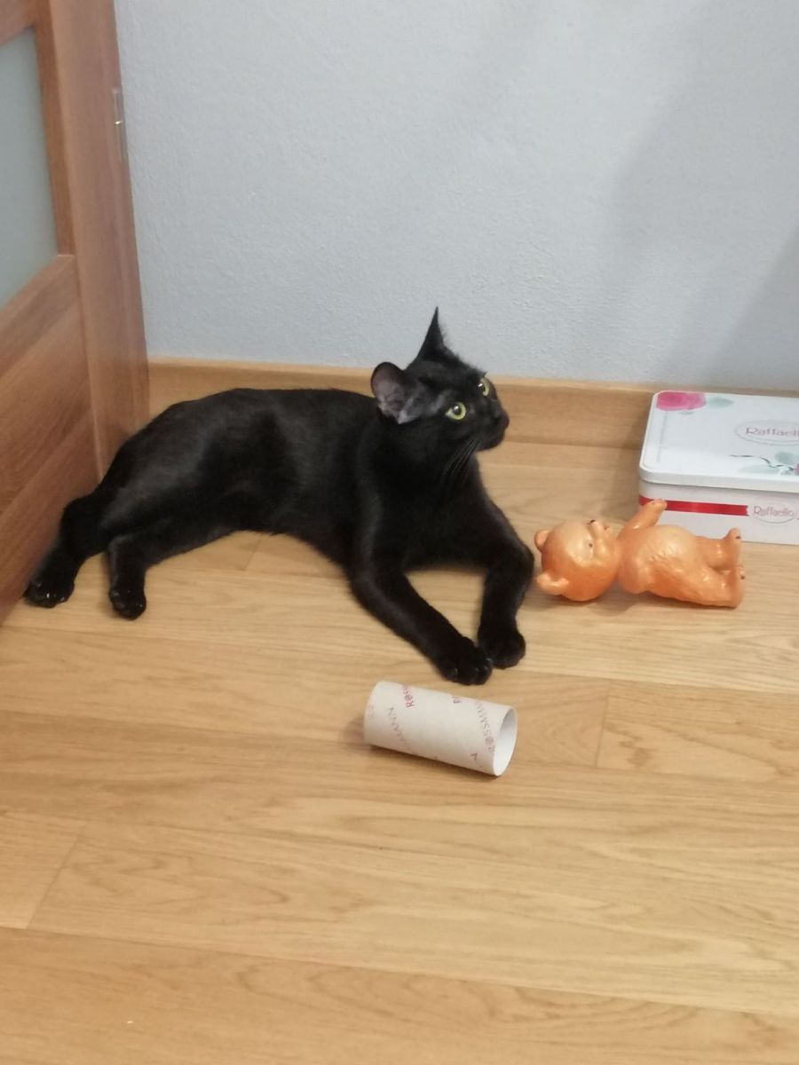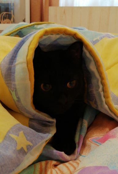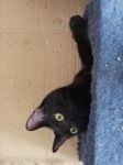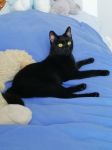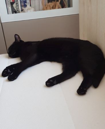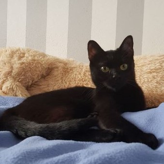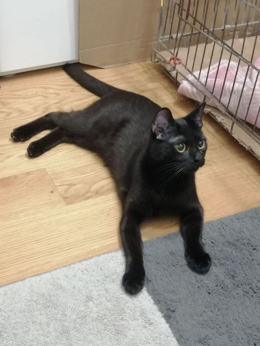 Bourbonka, dla przyjaciół Burbi, to przeurocza czarna koteczka o drobnej budowie i lśniącym, czarnym futerku. Trafiła do nas jako podrośnięty kociak znaleziony z rodzeństwem w piwnicy - była wtedy przerażonym dzikuskiem. Teraz to totalnie inny kot! Dzięki temu, że była oswajana w domu tymczasowym, zamieniła się w bardzo potrzebującego człowieka słodziaka. Nie jest może królową pewności siebie, bo na początku przy obcych osobach jest nieśmiała i bardzo czujna, ale gdy minie trochę czasu, staje się ogromnym miziakiem, który prosi o uwagę. Uwielbia głaski, chodzi za człowiekiem jak piesek, ociera się o nogi i szuka okazji, by choć trochę ją pomiziać. Bardzo lubi bawić się wędką, jak szalona biega za nakrętką od butelki lub orzechem włoskim. Szuka człowieka, który ją zrozumie i da jej czas, na pewno się odpłaci kocią miłością.