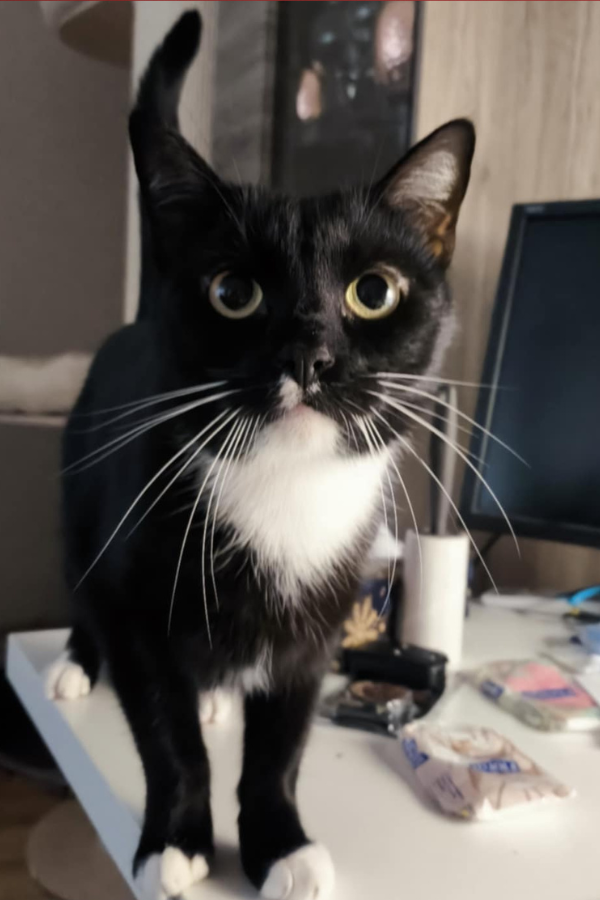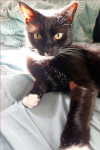 Miły, młody kotek, dość zrównoważony. Dzięcięce psoty już mu nie w głowie, ale jest oczywiście skłonny do zabawy.