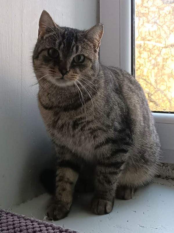Kotek od początku był nieufnym dzikuskiem. Niestety okazało się, że jest nosicielem wirusa FeLV, więc już u nas został. Nadal stroni od kontaktu z ludźmi :(