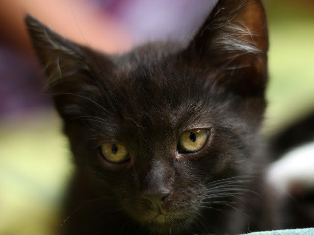 Enterek przyszedÅ‚ na Å›wiat w lipcu 2017 roku. Przeuroczy koci chÅ‚opczyk jest z niego. StraszniÅ›cie przeuroczy. O bÅ‚yszczÄ…cym, czarnym futerku. I piÄ™knym trójkÄ…tnym pysiu. Czaruje czarnym nochalkiem i bystrym spojrzeniem piwnych oczek. Jak nikt kocha ludzi i musi być blisko. Pcha siÄ™ do czÅ‚owieka, lubi spać obok czÅ‚owieka, z czÅ‚owiekiem. Lubi przesiadywanie na klacie i podstawianie grzbieciku, wywalanie brzucholka, Å‚epeczka i boczków do mizianek. Wszystko z traktorkiem załączonym na maksa co niesie siÄ™ po caÅ‚ym domu. Okrutnie gÅ‚oÅ›no potrafi pomrukiwać. Tak w stereo. W domu nazywamy go Niuniusiem lub Synkiem bo taki EntuÅ› jest. SÅ‚odycz i ciekawość w jednym kocim dziecku. Enterek wszÄ™dzie musi być, wszystko musi zobaczyć, na każdy dźwiÄ™k biegnie sprawdzić co siÄ™ dzieje. Czy to gość, sprzÄ…tanie czy torba z zakupami. Nie usiedzi spokojnie dÅ‚użej. Zawsze jest pierwszy. Zawsze w ruchu. Do miski tylko nie koniecznie. Nie jest Å‚akomczuchem. Choć ma swoje smaki ulubione. Enterek to gaduÅ‚a. Ma zasób słów spory i ciÄ…gle grucha, pogaduje, miaukoli. Śmiesznie rozbrykany z niego dzieciak. W zabawÄ™ wkÅ‚ada caÅ‚e swoje serce i ciaÅ‚ko. Dogaduje siÄ™ doskonale z kocimi towarzyszami. Nie zraża tym, że jakiÅ› starszak nie chce siÄ™ bawić. Wszystkich do siebie przekona.Â