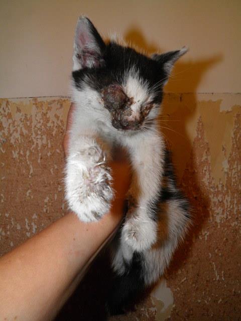 - kociaki z Os. Tysiąclecia - 3 maluchy z kocim katarem zabrane z piwnicy w której zabito prawie wszystkie koty.