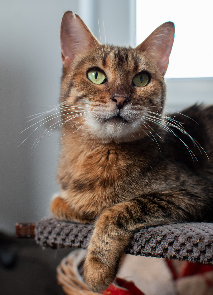 Orlica to już od dawna dorosła, ale nadal bardzo energiczna bura koteczka. Lubi ludzi. Mieszka w dt w Ząbkach razem z innymi kotami oraz psem.