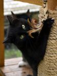 Skorpion jest raczej neutralny do kotów. Jest wielki, z przenikliwym spojrzeniem. On nie marnuje czasu na bójki.