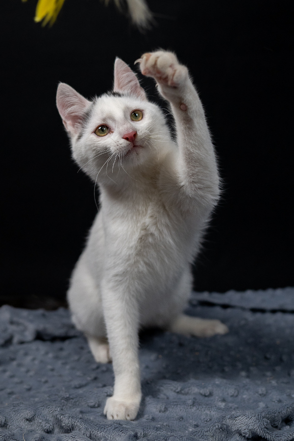 Oczywiście potrafi też łobuzować, jak to małe kociaki. Wszędzie ich pełno! Niestety nadal są w trakcie doleczania infekcji, więc obecnie szukamy tylko doświadczonego domku.
