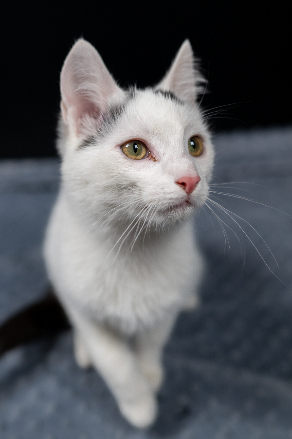 Smalec to piękny, mały kocurek w szare łatki z białym pędzelkiem na końcu czarnego ogonka oraz wiecznie zdziwioną minką 😀 Ma jeszcze 3 siostry (Skwarkę, Słoninę i Spyrkę) oraz brata - Skwarka. Cała gromada trafiła do nas z podwarszawskiej wsi po śmierci ich matki. Wszystkie kotki są oswojone, lubią kontakt z człowiekiem, chętnie pozwalają się głaskać i brać na ręce. Zostały wykarmione butelką, więc są niesamowicie proludzkie i ufne. Lubią dzieci i akceptują psy ;)
