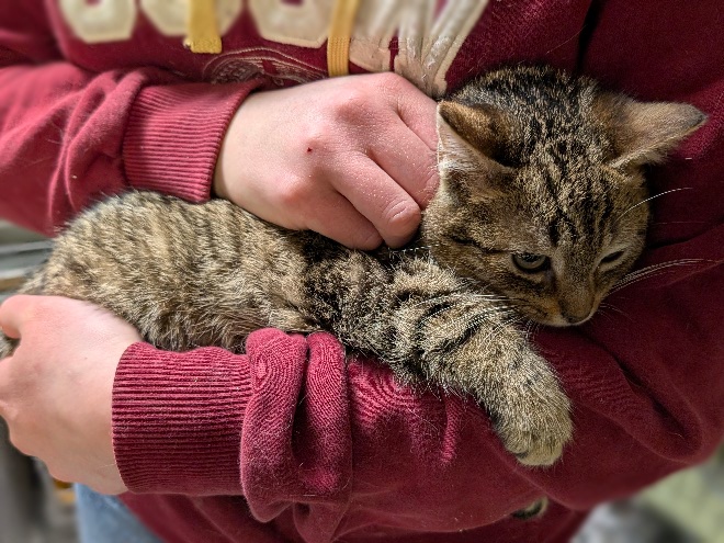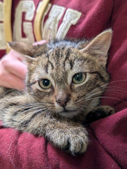 Yao to kilkomiesięczny bury dzieciak. Obecnie bardzo nieśmiały, wręcz boi się człowieka 🙁 Jest jeszcze na tyle mały, że powinien dość szybko robić postępy w oswajaniu…gdyby trafił do Swojego Domu, lub chociaż DT. W azylu szanse na oswojenie go są małe…