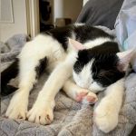 Baronessa to smukła, czarno biała kotka u której wszyscy zachwycają się jej białymi uszami 😁 Z pozoru jest jak Wednesday Adams (nawet kolory pasują), ceniąca swoją niezależność i podążanie własnymi ścieżkami ale w rzeczywistości ma jedno skryte marzenie - stały dom i ludzie na własność, którzy otoczą ją opieką.