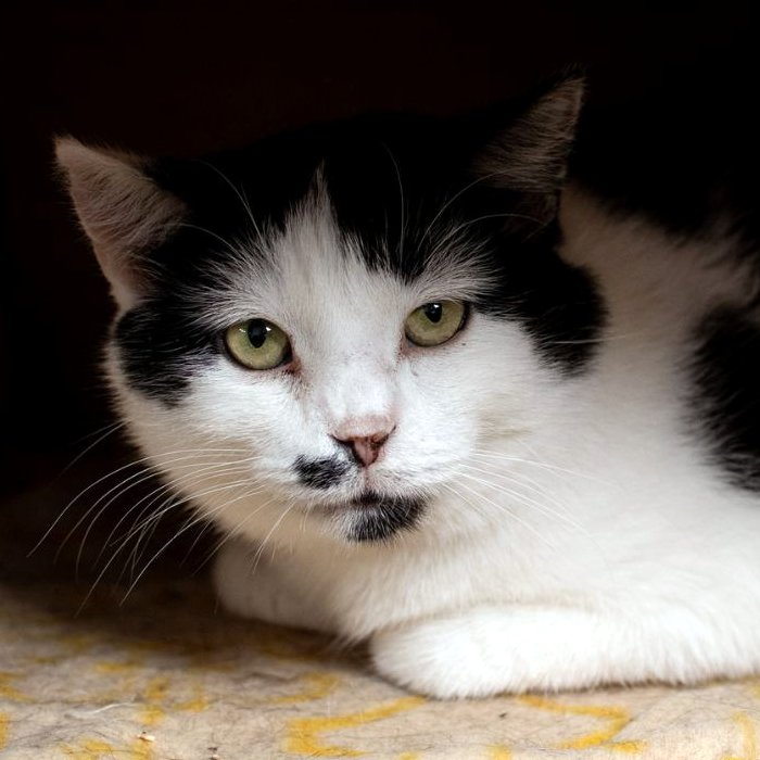 Bolek to kilkuletni, nieśmiały, czarno-biały kocurek o ślicznym okrągłym pyszczku. Wygląda jak łaciata krówka. Bolek jest alergikiem i z tego powodu nie może jeść drobiu. Zwłaszcza kurczaka. Poza tym szczegółem jest kotem jak każdy inny 😀