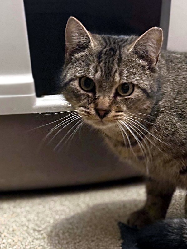 Kotek od początku był nieufnym dzikuskiem. Niestety okazało się, że jest nosicielem wirusa FeLV, więc już u nas został. Nadal stroni od kontaktu z ludźmi :(