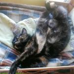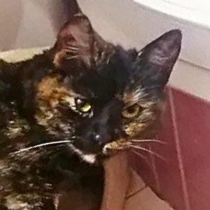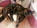 Klarcia jest wyjątkowo pięknym kotem. Zielone oczyska są ozdobą w kolorowym pysiu. Ma śliczny kolor futerka - jest wysoką, ciemną szylkretką z rudymi refleksami. Ma też byle jak założone rudawe skarpetki i taką końcówkę ogonka. Przystojniaczka z niej wielka! I wielbicielka wody też z niej wielka. Z uporem kocim Klarunia podejmuje próby zrobienia w domu luksusowego basenu ;) wychlapując wodę z pojemnika. Czasem jej się udaje zmontować prawie olimpijską sadzawkę ;)