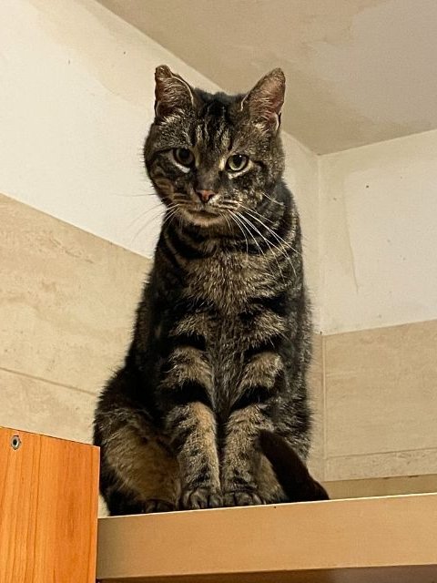 Kostuś to kot dla fanów konkretnych gabarytów! Wielki kocur, o atrakcyjnym marmurkowym umaszczeniu. Bardzo delikatny i mimo gabarytów, nieśmiały, misio. Bardzo płochliwy, ale z dużym potencjałem na oswojenie. Podczas robienia mu zdjęć potrafi podejść i obwąchać telefon. Jego wrodzona ciekawość pomaga mu w przezwyciężaniu nieśmiałości. W domu, gdzie byłby jednym z maksymalnie kilku kotów, a kontakt z człowiekiem byłby częstszy - szanse na oswojenie na pewno byłyby znacznie większe 😃