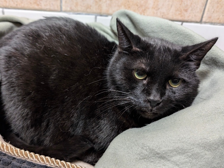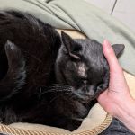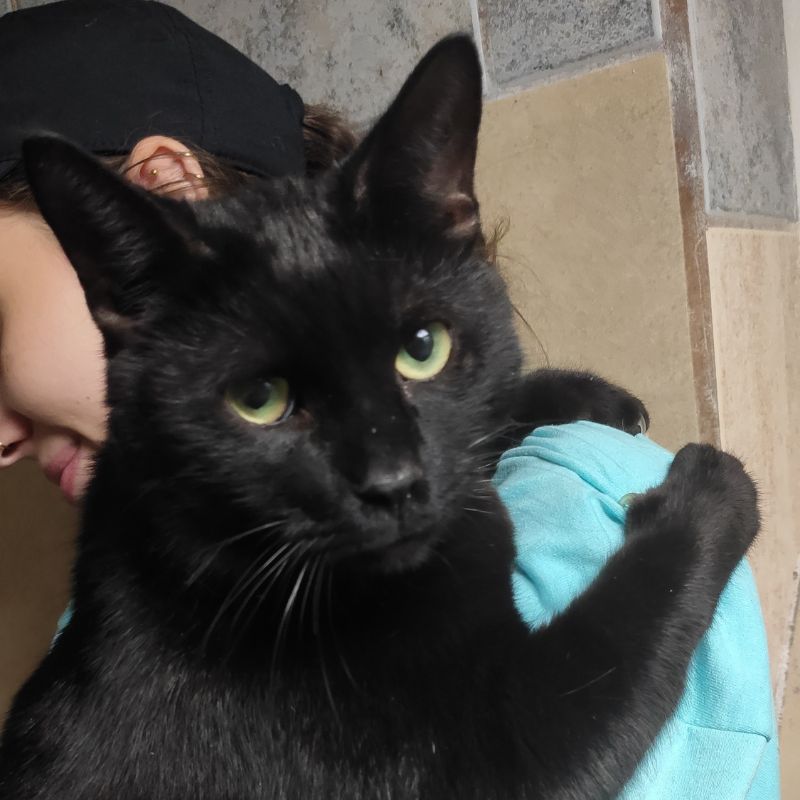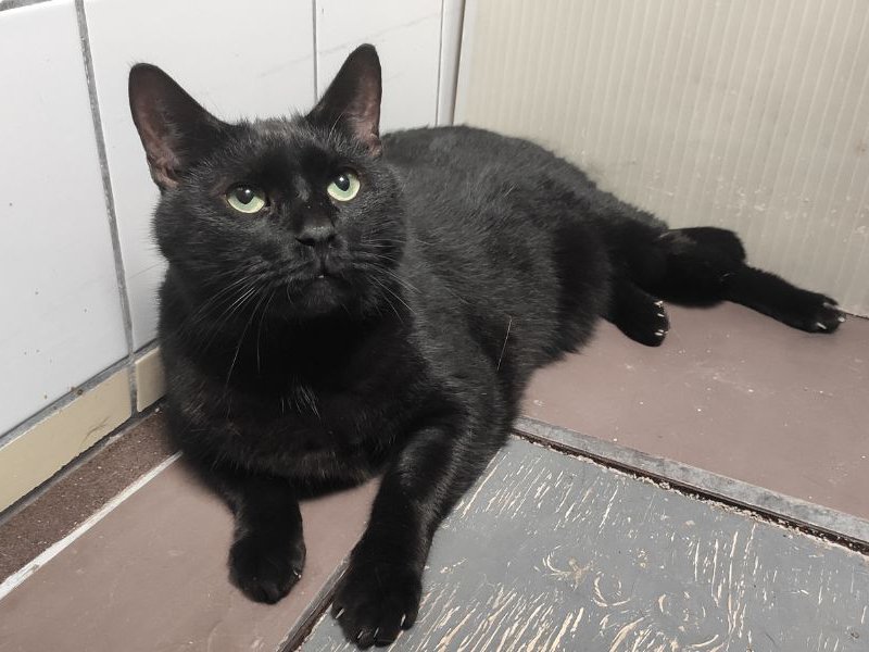 Mamba to ogromny czarny kocur. Na pewno waży więcej niż 6kg. To bardzo miły, proludzki kotek. Trafił do nas (razem z burym kolegą, Guciem) po starszej pani która musiała przenieść się do domu opieki i już nie wróci... Miał być dziki, a okazał się kochanym ogromnym miziakiem. Lubi branie na ręce, głośno mruczy przy głaskaniu. Jest kochany ❤️ Czy ktoś zechciałby dać mu drugą szansę na dom?