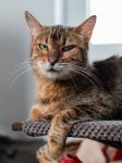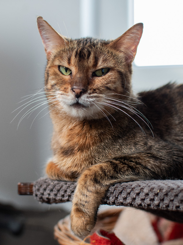 Orlica to już od dawna dorosła, ale nadal bardzo energiczna bura koteczka. Lubi ludzi. Mieszka w dt w Ząbkach razem z innymi kotami oraz psem.