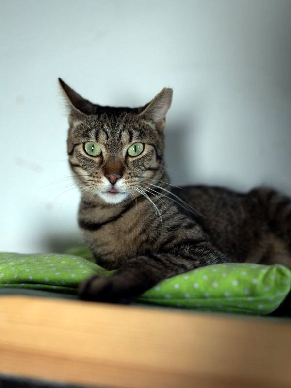 Niby zwykła buraska, ale o niecodziennej urodzie. Wyrosła na bardzo smukłą koteczkę o charakterystycznym kształcie głowy. Delikatnie skośne oczy i biała końcówka ogonka tylko dodają jej uroku.