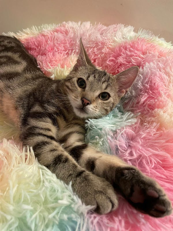 San jest najbardziej hop do przodu, wszędzie już był i wszystko widział! Lubi mizianki, tak samo jak siostry, ale nie zawsze ma czas na takie głupoty Za to jego uroda po prostu powala! Burasek, ale za to marmurek, czyli inaczej mówiąc klasycznie pręgowany.