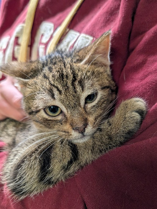 Yao to kilkomiesięczny bury dzieciak. Obecnie bardzo nieśmiały, wręcz boi się człowieka 🙁 Jest jeszcze na tyle mały, że powinien dość szybko robić postępy w oswajaniu…gdyby trafił do Swojego Domu, lub chociaż DT. W azylu szanse na oswojenie go są małe…